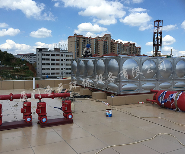 不锈钢生活水箱是按照不锈钢水箱的用途而细分的一种水箱,按照国家的相关标准,不锈钢生活水箱必须采用SUS304不锈钢板,也就是人们常称的“食用级不锈钢板”,这种钢板含镍量较高,具有较高的抗锈蚀性,用这种钢板制作的水箱一般情况下寿命都在二十年以上,并且能达到国家饮用水的卫生标准要求。